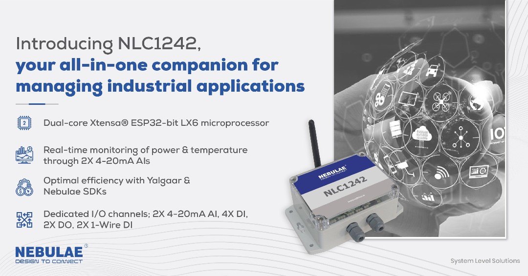 NebuLink NLC1242 is the latest data acquisition system released by SLS. Hosting both Nebulae and Yalgaar frameworks, NLC1242 is designed to serve a wide variety of industrial use cases by bridging the gap between end-user applications and sensors. NLC1242 comes with an ESP32-based dual-core Xtensa 32-bit microprocessor from Espressif Systems. NLC1242 also has an in-built fuse protection circuit which prevents unwanted input fluctuation.